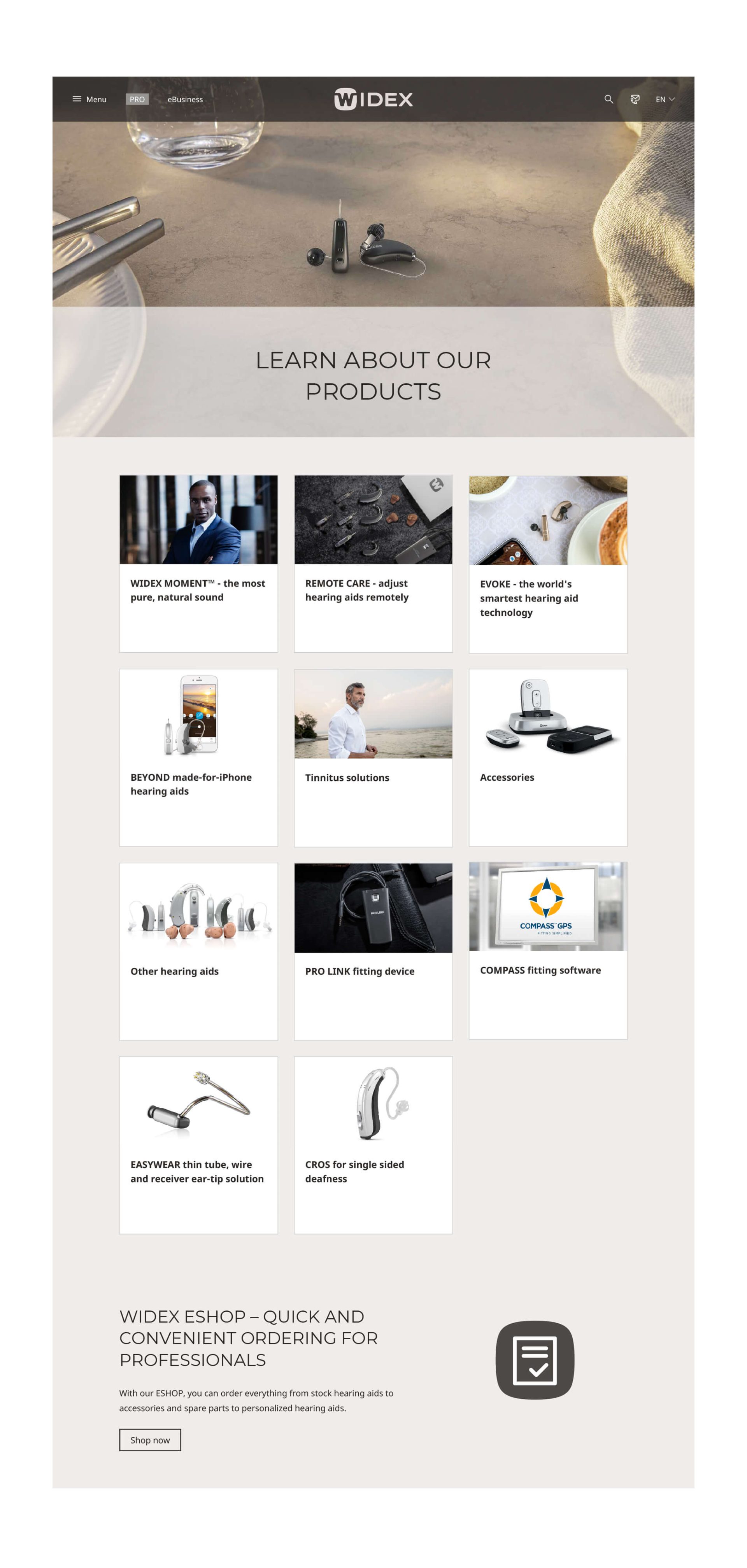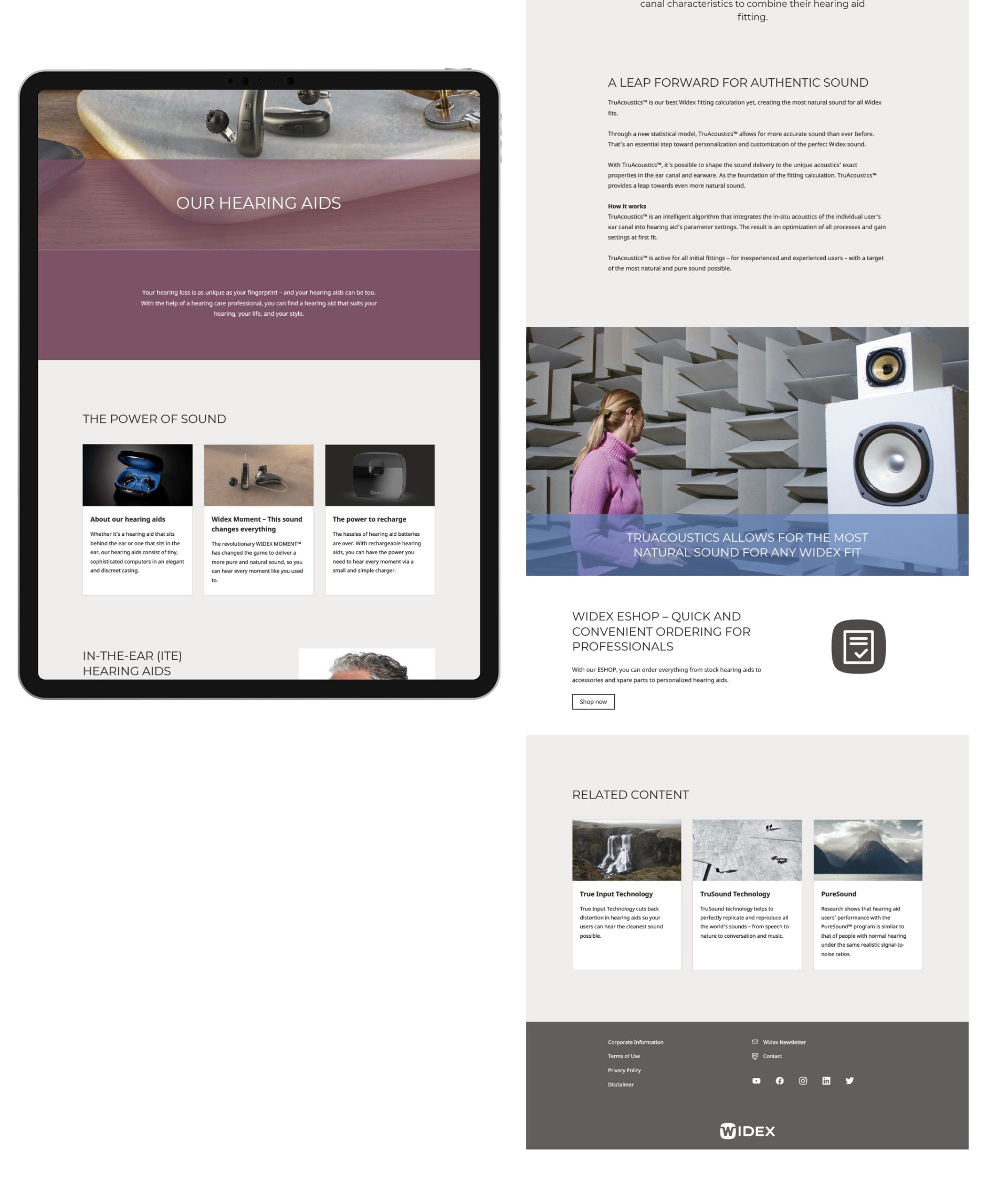 UI and UX design for the new website for the Danish hearing-aid manufacturer Widex.
